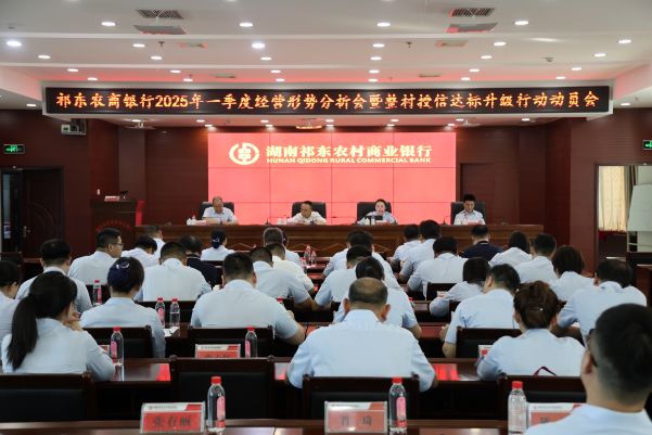 金融文化参讯—湖南(刘洋)为全面总结一季度经营成效,剖析发展短板,表彰先进典型,部署二季度重点工作,动员全行上下锚定目标、乘势而上,奋力谱写高质量发展新篇章。4月21日,祁东农商银行召开2025年一季度经营形势分析会暨整村授信达标升级行动动员会,总行党委领导,各部室负责人,一、二级支行行长,业务能手及青年员工代表共计80余人参加会议。会议由该行纪委书记、监事长刘吉龙主持。