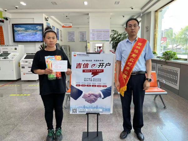 二是线上线下结合,提升专项服务影响力。通过印制并发放《企业开户服务手册》、摆放宣传折页、LED屏滚动播放宣传标语等方式开展线下宣传活动;通过朋友圈发布“吉信e开户”相关流程,利用抖音、快手、美篇等持续开展动态的线上宣传工作,双线发力,积极营造“宣传一人,带动一家,影响一片”的良好氛围,扩大群众对“吉信e开户”工作的知晓率和参与率。