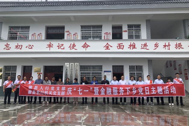 6月26日,农行徽县支行机关支部联合人民银行徽县支行党支部共同开展庆“七一”送金融服务下乡主题党日活动。