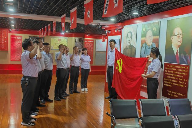 期间,参观了徽成两康兵变纪念馆,全体党员跟随着讲解员的步伐,共同回顾了党的革命历史,并在支行党委书记、行长成真斌的带领下,面对党旗庄严宣誓,重温入党誓词,铿锵有力的誓词直击人心、催人奋进,引导全体党员干部时刻牢记自己的承诺,牢记党的宗旨,遵守党的纪律,做合格的共产党员。