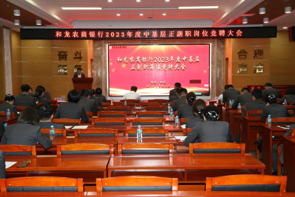 金融文化参讯-吉林(张薇)为贯彻落实吉林省农信联社相关工作要求,进一步整合组织架构,理顺部室职能,提升治理效能,努力打造一支“懂经营、会管理、善作为”的高素质干部队伍,11月2日,吉林和龙农商行召开2023年度中基层正副职岗位竞聘大会。