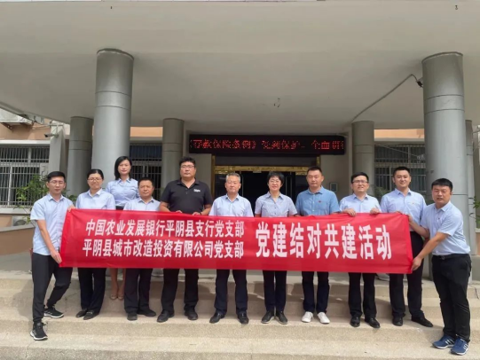 ▲该行与平阴县城市改造投资有限公司开展党建结对共建活动
