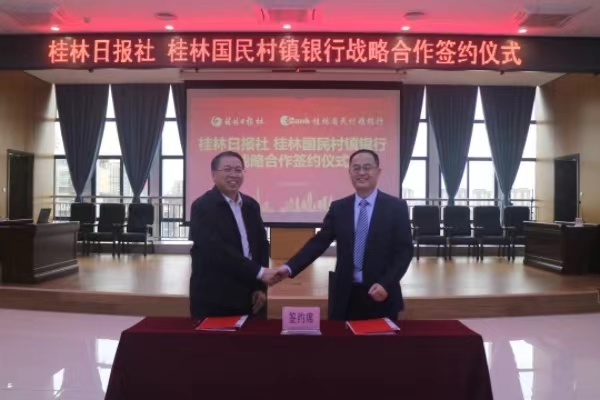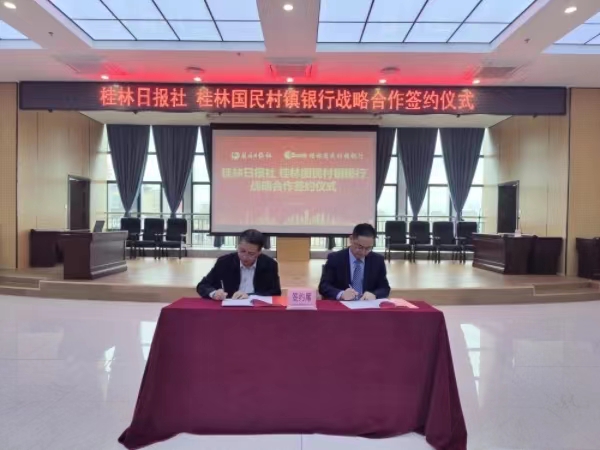 金融文化参讯-广西(李卉)11月10日下午,桂林国民村镇银行与桂林日报社正式签订了战略合作协议。这一合作标志着双方将在未来的发展中,优势互补、资源共享,共同谱写“金融+媒体”融合发展新篇章。