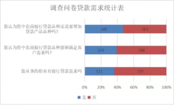 本次调研主要通过内部座谈和外部问卷调查法,选择乡镇、城郊、城区,业务发展靠前、靠中、靠后所在网点村委会、村组、企事业单位、农村集体经济组织以及种养殖大户等,以随机分发调查问卷和口头咨询为主,共计发放调查问卷350份,成功收回308份,均为纸质问卷填写。从而发现和找出县级农商银行当前发展瓶颈,制约因素,采取查不足,找差距、明方向、补短板方式回应两大市场,为后续制定新的营销策略提供支持。