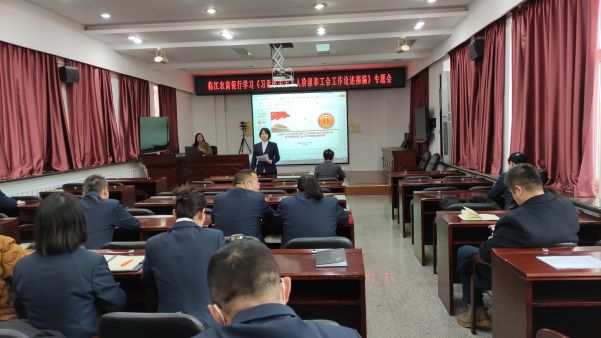 金融文化参讯-吉林(姜雪)近日,吉林临江农商银行开展学习贯彻《习近平关于工人阶级和工会工作论述摘编》学习会,运用省联社工会培训时的课件将相关内容进行再学习、再传达、再落实。班子成员及副职以上中层56人参加。