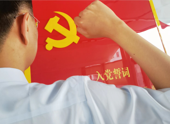 一个党员一面旗帜,鲜红的党旗下,党的光辉恰似正午的阳光一般温暖,农信人沐浴在光辉下,爱党情怀自心底冉冉升起,坚守初心使命,不忘责任在肩,紧跟党的步伐,始终心中有党,心中有民。