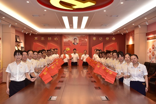 与党旗合影表达对党的热爱与拥护。机关全体党员齐聚党旗下,与党旗合影、向党旗敬礼,党员们上扬的嘴角似镰刀的弧度,内心的热忱与党旗的底色一致,每一张笑脸都是对党最深情的告白,表达了对党的热爱和深情祝福。