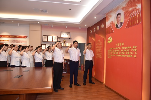 重温入党誓词坚定党员理想信念。市分行党委书记李力带领机关全体党员重温入党誓词,大家整齐列队,精神饱满,神采奕奕,面向庄严的党旗举起右拳共同宣誓,“我志愿成为一名党员,拥护党的纲领,遵守党的章程...”闪闪的党徽,炯炯的目光,铮铮的誓言,让大家更加坚定了为共产主义事业奋斗终身的坚定信念。
