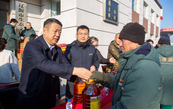 金融文化参讯-吉林(唐建义)为了让广大城市建设者们度过一个幸福祥和的春节,辽源农商银行于1月9日上午,在市园林处举办了爱心捐赠活动,为全市园林绿化工人送去米、面、油等价值20万元的生活补给。辽源农商银行陈晓明行长、蔡巍副行长等领导参加了捐赠活动。