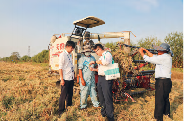 “张老伯,种稻种麦忙一年,挣点钞票不容易,千万不要相信那些‘高额回报’去搞什么刷单啊,接到要你往陌生账户里汇钱的电话就马上挂掉,都是骗人的……”近日,江苏张家港农商银行志愿者在田间地头、晒粮场地、农机仓库,用通俗易懂的语言,为农民群众讲解新型电信网络诈骗的种类、特点及防范方法,助力守护农民群众的血汗钱。图为志愿者在张家港市现代农业示范园区开展反诈宣传。