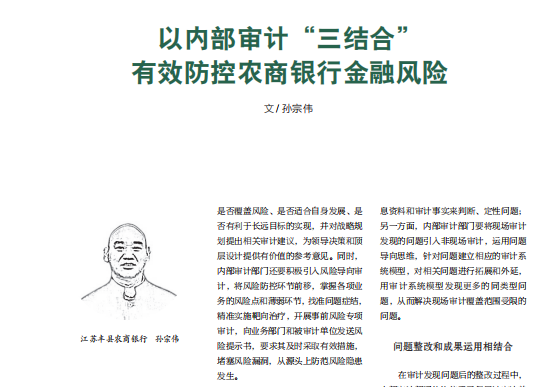 在内部审计工作中,内部审计部门要坚持事前审计与事后审计相结合、现场审计与非现场审计相结合、问题整改和成果运用相结合,全方位、全流程、全覆盖的做好审计工作,有效防控金融风险。