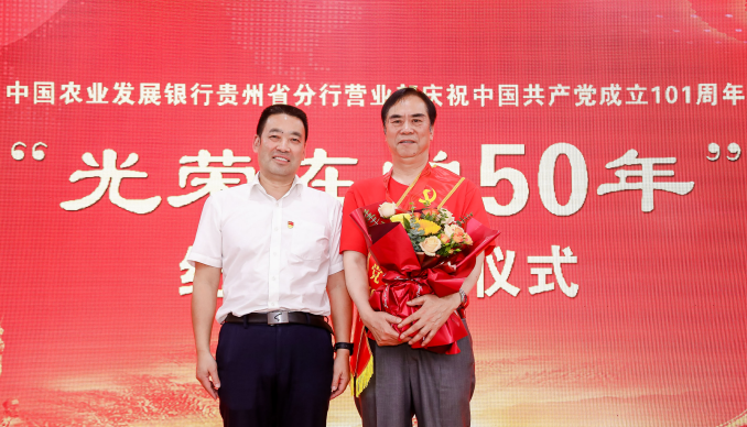 活动现场,该部领导为老党员同志颁授“光荣在党50年”纪念章,老党员轻抚勋章,精神矍铄,神采奕奕与大家分享党的故事,激动的讲到,“一辈子获得这份宝贵的荣誉,很骄傲很自豪”。该部领导表示,在举国庆祝建党101周年与香港回归25周年的伟大时刻,我们共同见证老党员获得“光荣在党五十年”纪念章。特殊的荣誉是老党员一生不改初衷、忠诚于党、廉洁奉献的最大肯定与鼓励,诠释的是老党员扎根基层,用实际行动践行服务三农和乡村振兴的使命。伟大的时代需要伟大的精神,崇高的事业需要榜样的引领。当前我们面临的最大形势是百年之未有大变局和世纪疫情,最大的挑战的是“努力推动经济回到正常轨道、确保运行在合理区间”。越是关键时刻越是要坚定信仰信念信心,新时代的共产党员承载着“为中国人民谋幸福,为中华民族谋复兴”的使命责任,更需要发扬和传承红色精神、追寻奋斗足迹,以坚定的理想信念和坚强的革命意志扎根奋斗。