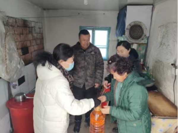 金融文化参讯-黑龙江(祝宁宁)寒冬透寒意,慰问暖人心。新春佳节来临之际,东宁市支行党支部带着对帮扶户的牵挂,于1月31日来到东宁市道河镇沙河子村走访慰问。为帮扶户王月香老人送去了春节慰问品—米面油以及医用口罩、酒精消毒夜等物资,并送上新年的祝福和问候。在帮扶户家中,东宁市支行领导与她们拉家常、问寒暖,了解她的身体情况和生活状况。