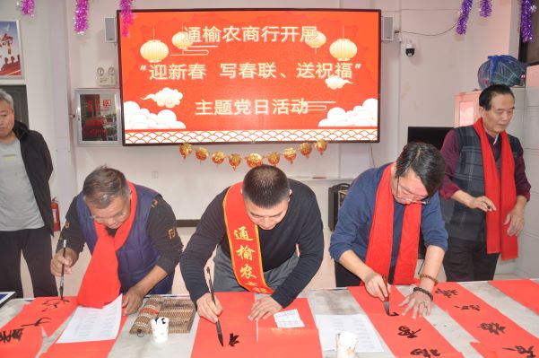 金融文化参讯-吉林(李春迪)龙年将至,为不断丰富银社共建内涵,将温度、温暖送到群众心中,1月31日,通榆农商银行走进育才社区开展“迎新春、写春联、送祝福”主题党日活动,进一步发挥党支部的基层战斗堡垒作用,既丰富了职工的文化生活,又加深了“党群一家亲”的鱼水情。