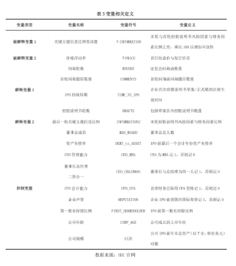 本文拟选取问询监管、中国赴美上市企业信息披露和企业信息披露环境变量,构建问询监管与中国赴美上市企业信息披露的回归关系,在结果显著性基础上,构建上市企业最终信息披露与企业信息披露环境回归关系。在2005-2019年赴美上市78家中国企业中(除去金融业、退市及注册地为美国企业),共有42家中国企业收到问询函,其构成本文样本。通过SEC官网进行招股说明书下载与数据手工提取,变量整理如表3所示: