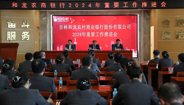 金融文化参讯-吉林(张薇)为进一步贯彻落实吉林省农信联社2024年初工作会议精神,2月27日,和龙农商银行召开2024年重要工作推进会,会议对具体工作再部署、再推进、再落实。该行党委班子成员、总部全体员工、支行(部)正副职、主管会计及网点负责人参加会议。