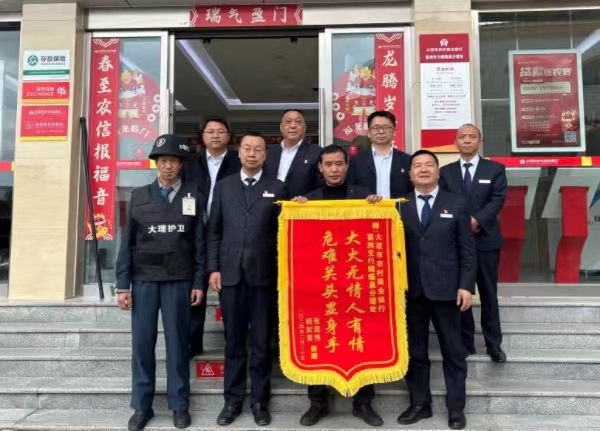 金融文化参讯-云南(刘毅)近日,大理市农商银行喜洲支行蝴蝶泉分理处迎来了一位特殊的客户张现伟,他把印有“大火无情人有情 危难关头显身手”的锦旗送到支行副行长、分理处主任何伟锋手上,对农信员工挺身而出见义勇为的英勇壮举表达了深深的敬佩和谢意!
