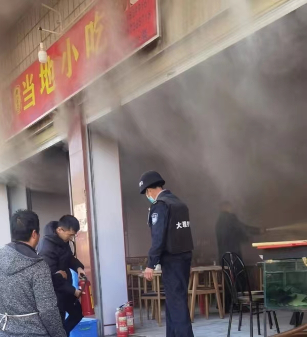 2024年1月31日上午9:30,分理处对面的当地小吃浓烟滚滚,火光四射。据餐馆老板张现伟介绍,油烟灶上的油锅因温度过高引发火灾,由于火势较大难以近身关闭阀门, 烈火伴着浓烟顷刻间翻滚而出,整条街上都弥漫着呛鼻的浓烟味,现场烟雾浓度较高,加之油锅起火无法直接用水浇灭,赶来救援的人员一时手足无措,乱成一团。