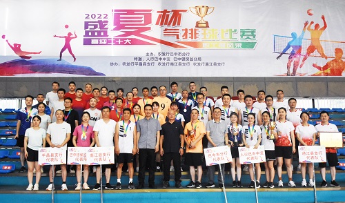 为进一步丰富职工业余生活,提高团队凝聚力,激发员工工作积极性。近日,农发行四川巴中市分行在巴中青少年综合训练馆隆重举办了以“喜迎二十大,职工展风采。”为主题的“盛夏杯”气排球比赛活动。