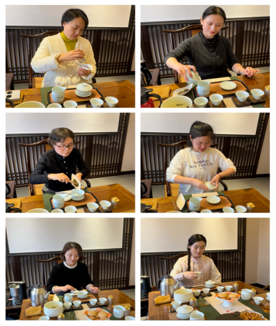 活动以优雅的净手簪花作为开场,会场上乐声悠扬、茶香飘溢,活动邀请的茶艺老师从中国茶文化的起源与发展讲起,详细阐述了各地的茶习俗、茶“水”的重要性与冲泡茶具的选择,对常见的三类绿茶各自的口感、功效与鉴别方法做了细致的讲解。