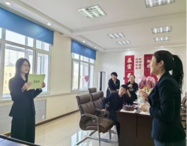 紧接着进行了兴奋刺激的趣味游戏活动,节日气氛达到高潮,每个人都沉浸在游戏氛围中,脸上都洋溢着青春笑容。游戏结束后,该行为女职工们准备了节日惊喜,献上手捧花束和专属定制手牌,大家都以愉悦的心情参与拍照活动。结束后进行了茶话会交流,谈一谈对工作的感想,对自身涉及的业务进行积极探讨和规划,纷纷表示,今后会更加勤于学习、精于业务,为富锦市支行的发展迈向新台阶而作出努力。