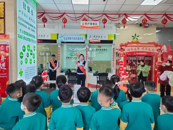 活动当天,该支行工作人员生动有趣的为幼儿园小朋友们讲解货币知识,让小朋友们通过看、摸、听的感官体验,了解人民币的特征、不同面额币值的差别以及如何识别假币等知识,增强孩子们对钱币的深入了解。不仅如此,该支行为进一步提升孩子们对银行业务的了解,还引领师生共同参观各种自助机具,了解叫号机、ATM机、智慧柜台及高速存取款一体机等机器设备,并通过模拟现场办理业务的形式,让小朋友们对银行卡、存单及人民币有了更加直观的认识。此次宣传活动为师生们带来了新的体验和认知,不仅在孩子们的心中种下了一颗小小金融知识的种子,也为他们打开了“理财观”的启蒙之门。