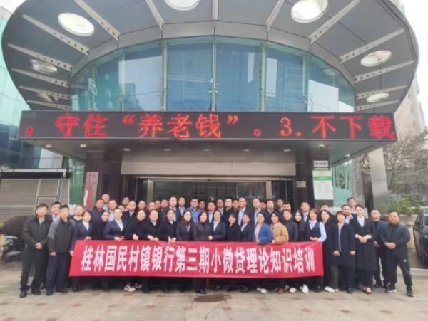 金融文化参讯-广西(黄兰清)为大力开拓小微信贷市场,深耕优质个体工商户,提升员工的微贷知识及风控能力,桂林国民村镇银行于3月15-17日在总行组织开展了第三期小微贷理论知识培训,部分支行负责人、客户经理代表等参加培训。