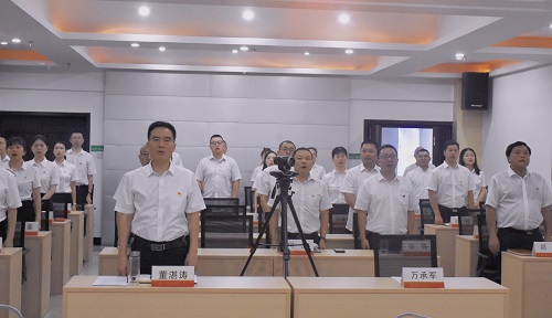 重温入党誓词,坚定理想信念。该行党员在市分行党委书记、行长董湛涛同志的带领下,面对鲜红的党旗,再次庄严宣誓,发出为共产主义奋斗终身的誓言,铿锵的誓词让党员们热血沸腾,表达出为党的事业奋斗终身的决心,更加坚定了自己的理想信念和党性认识。