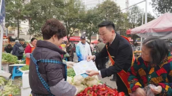 针对集市上群众提出的疑问,遵义农商银行工作人员通过在人流密集区域悬挂存款保险宣传横幅,发放宣传折页,积极与集市摊主和群众互动,面对面与老百姓交流,用通俗易懂的话语讲解了存款保险的保障范围及相关制度,消除存款人在存款过程中的疑虑。同时,该行还进行沿街商铺宣传,扩大宣传覆盖面,让更多人足不出户便能学习到与自身利益切实相关的金融知识。