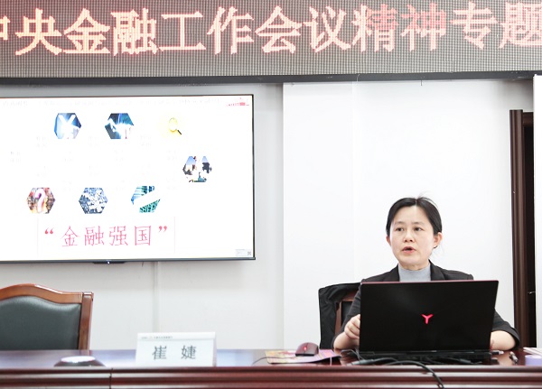 金融文化参讯-山西(高军峰)为认真落实总行“把中央金融工作会议精神贯彻到每一位干部员工”的要求,4月18日,农发行吕梁市分行组织市县两级行全体干部员工以“现场+视频”的方式开展了学习贯彻中央金融工作会议精神培训,邀请山西财经大学金融学院副院长、教授、博士生导师崔婕作“加快建设金融强国 推动金融高质量发展”专题讲座。