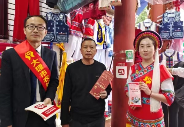大理市农商银行金融知识宣传小分队,挨家挨户到商户门前张贴“现金支付”标识,宣讲人民银行拒收现金整治要求,普及境内外银行卡刷卡、ATM银行卡取现、个人本外币兑换、零钱兑换相关知识,并宣传防范电信网路诈骗的常用手段,以最传统、最接地气的方式,不断扩大支付便民、利民知识的覆盖面,进一步保障消费者合法权益。