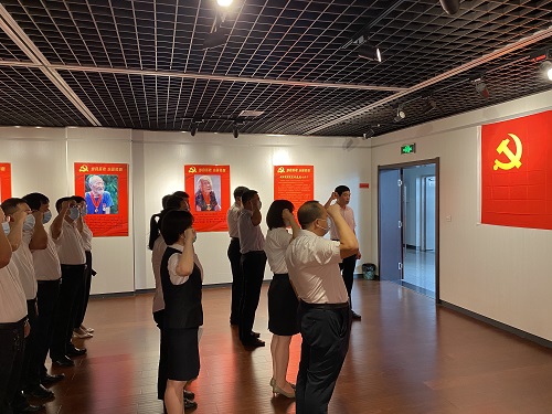参观结束之时,5名新发展党员面对鲜红的党旗,在党委书记张永利同志的领誓下,进行了入党宣誓,表达了对马克思主义的坚定信仰、对中国共产党的高度信赖、对共产主义的坚定信念。