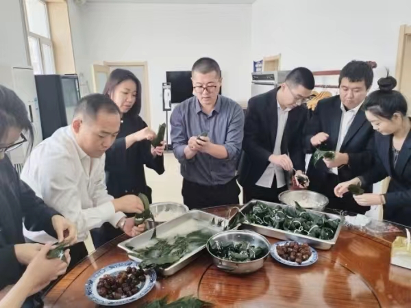 工作人员在食堂精心布置场地,将新鲜的粽叶、饱满的糯米、丰富的馅料等一一准备就绪。随后,干部职工在食堂工作人员的指导下,认真学习着包粽子的步骤和技巧,捋粽叶、填糯米、放蜜枣、封口、系紧棉线捆扎,每一个环节都一丝不苟,不一会儿,一个个玲珑饱满、承载吉祥的粽子就包好了。员工们边动手包粽子,边交流包粽子技巧和手法,现场欢声笑语,其乐融融,洋溢着浓厚的节日氛围。