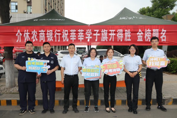 金融文化参讯—山西(王瑞俊)高考,承载着莘莘学子的梦想,寄托着无数家长的期盼,也牵动着农商银行的心。高考,是滚烫热血的高三青春里最沸腾的两天,也是六月最紧张的两天,在这个关键的时刻,介休农商银行为参加高考的学子们加油鼓劲,送上最真挚的祝福。