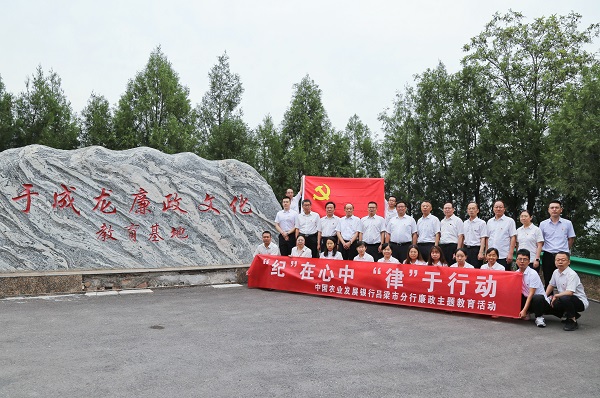 金融文化参讯-山西(高军峰)为认真落实中央党纪学习教育的工作要求,进一步推动党纪学习教育走深走实,6月18日,农发行吕梁市分行机关全体党员干部赴离石区安国寺于成龙廉政文化教育基地开展“纪在心中,律于行动”廉政警示教育活动,现场体验吕梁深厚的廉政文化底蕴,涵养党内政治文化,坚定理想信念、提高廉洁意识、筑牢纪法红线,以实际行动践行弘扬吕梁农发行“清慎廉”的奋进精神和严实作风。