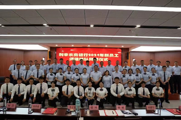 金融文化参讯-安徽(李晓刚)为扎实落实省联社“关爱基层一线员工”举措,发挥业务骨干对新员工的“传帮带”示范引领作用,帮助新员工尽快融入工作环境、适应工作岗位、提升业务水平,促进新员工的快速成长,传承好农信精神,在全行范围内营造教学相长、团结互助的良好氛围,6月20日,利辛农商银行举办“赓续农金血脉 传承农商精神”新员工入职拜师仪式。总行党委、部门经理、13名新员工“徒弟”和“一对一”老员工“师傅”,13家支行行长参加。