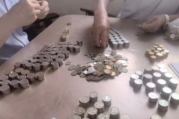 一个异常炎热的下午,该行磨形支行的大门被推开。客户王先生汗涔涔地跑来到柜台前来咨询,语气中带着一些小心翼翼:“请问这里可以兑换硬币吗?我有十几公斤的硬币需要兑换。”在一番交谈中得知,王先生目前正经营着一家水泥厂,前段时间一位老伯在他家购买水泥,货款里有价值2000多元的硬币,重达十几公斤。“那位老伯提着十几公斤的硬币来付款,我不忍心拒绝他。但现在大家都用扫码支付了,这样的钱款进来容易,花出去可有些难度啊!”王先生曾向其他银行咨询过兑换的事情,但因为数量巨大,兑换时间被一推再推。正在王先生犯难的时候,他听街坊邻居说最近农商银行正在做金融知识宣讲活动,傍晚时分还会到各家各户询问是否需要提供零钱兑换服务。于是王先生就抱着试一试的心态,来到了磨形支行。