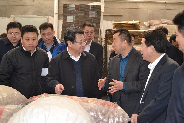 ▲为推动深度贫困地区的政策性金融服务工作,2016年-2019年间,时任总行党委委员、副行长鲍建安同志先后5次深入吕梁各县(市、区)调研推广“吕梁模式”。图为2019年3月7日,现场考察汾阳迅达土特产品有限公司