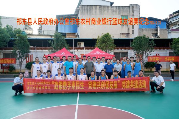 金融文化参讯-湖南(何源)运球、传球、突破、投篮……8月25日,一场以“政银携手惠民生,党建共创促发展”为主题的篮球友谊赛在响亮的哨声中拉开帷幕,来自祁东县人民政府办公室、祁东农商银行共三十余名运动员以球会友,以赛传情。