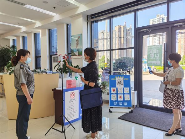 强化防控措施,严防外部风险。全力保障防疫物资供应,第一时间购买口罩、医用酒精、消毒液等防疫物资。对营业大厅、会议室、楼道等重点区域加大消毒频次,网点入口安排专人值守,强化入口处员工及客户检查,认真落实佩戴口罩、测量体温、查验核酸报告、健康码和行程码、实名登记等制度。营业室内严格执行“一米线”管理,专人维护秩序,引导客户保持安全距离,做到不拥挤、不越位、不混乱,全力守护好客户、群众和员工生命安全。