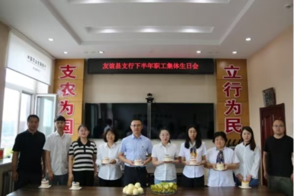 金融文化参讯-黑龙江(葛佳慧、刘小娟)为充分发挥党建统领作用,落实农发行双鸭山市分行年中行长会提出的任务目标和工作要求,引领全行上下以饱满的热情、昂扬的姿态迎接建行30周年的到来,进一步增强干部队伍凝聚力、向心力,提升全行干部职工归属感、幸福感,9月4日,农发行友谊县支行举办了2024年下半年职工集体生日会。