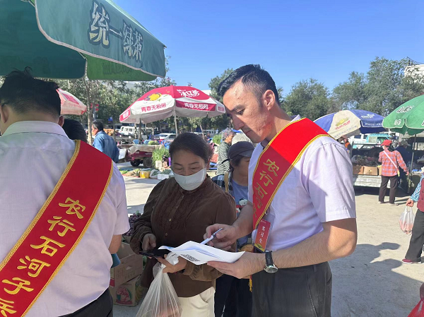 农行石河子兵团分行同步开展“担当新使命 消保县域行”专项活动,充分发挥农村金融主力军作用,利用网点分布广、“三农”覆盖面高的优势,加大金融教育宣传下沉力度,借助农村“赶集日”,开展针对性和实效性更强的教育宣传活动,切实打通金融教育宣传“最后一公里”。