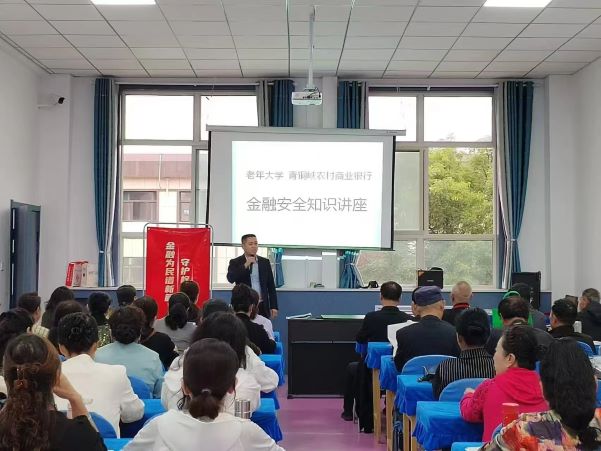 金融文化参讯-宁夏(何芳)为深入贯彻落实 2024 年"金融教育宣传月"工作部署,不断践行金融工作政治性、人民性,切实提升群众金融素养和风险防范意识,营造和谐健康金融环境。9月12日,青铜峡农村商业银行以“金融为民谱新篇 守护权益防风险”为主题开展“行长讲消保”活动,由该行副行长带队走进青铜峡市养老服务中心老年大学开展金融知识安全讲座。