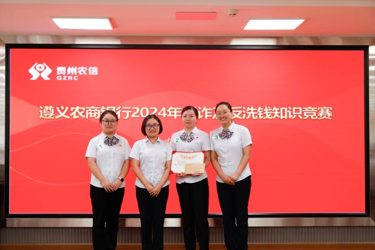 金融文化参讯-贵州(郭敏)9月19日,遵义农商银行工会联合业务部门组织开展了2024年反诈及反洗钱知识竞赛,旨在提升员工反诈及反洗钱知识技能水平,达到“以赛代训、以赛促学、以学促干”的目的,营造比学赶超的良好氛围。