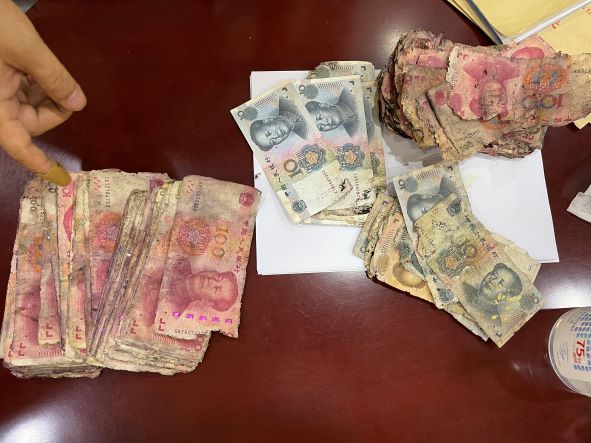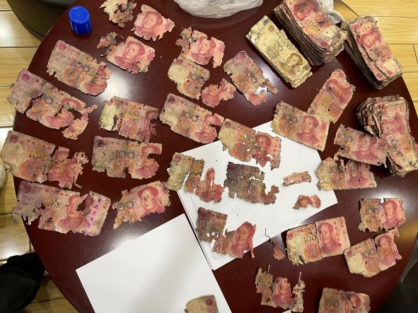 员工们一边忙着手里的活,一边和旁边的客户唠嗑。这才知道,这一大笔钱被客户的老父亲在屋檐下面藏了三年多,最近才念叨着找出来,发现已不成样子。一家人埋怨的、唠叨的,闹得不可开交。最终决定到银行碰碰运气,也是抱着试试看能换多少就是多少的想法。