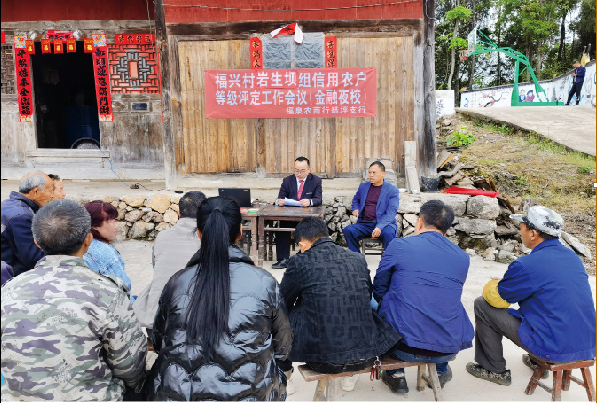 近日,在贵州福泉市陆坪镇福兴村岩生坝村寨,两张桌子、一条凳子、一台电脑在村民家门口组成了临时办公桌,这是福泉农商银行陆坪支行的网格员给当地村民开办的一次信用农户等级评定会。福泉市陆坪镇福兴村岩生坝是一个水族村寨,为助力村寨经济发展,做好金融支持,陆坪支行将信用工程等级评定会选在了这里。“为什么做信用等级评定”“如何获得更高额度和更优惠利率”“如何实现不用到网点也能获取贷款?”评定会围绕这些话题开始了金融知识的普及。