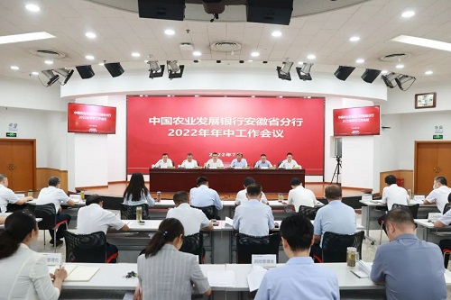 近日,农发行安徽分行召开2022年年中工作会议,深入学习贯彻总行年中工作会议精神,对标总行工作部署和省行年度工作会议明确目标任务,总结上半年工作,分析形势统一思想,安排部署下一步重点工作。省分行党委委员、副行长侯峥同志作工作报告;纪委书记、党委委员田永强同志,党委委员、副行长朱军、金雷、曹运柏、周喜凯同志结合分管工作作具体安排部署。会议以线上线下相结合方式召开,省分行行资深、驻安徽审计办主要负责人、各二级分行主要负责人、各处室主要负责人在主会场参加会议;各二级分行其他班子成员、各部门主要负责人,各县级支行班子成员在分会场参加会议。