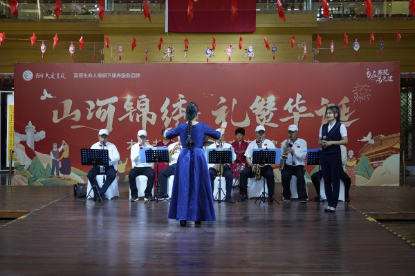 金融文化参讯-河北(刘雪梅)为弘扬传承中华民族孝亲敬老传统美德,近日,香河农商银行走进“大爱书院”为院内长者送上精彩演出,用嘹亮的歌声与长者们共同庆祝新中国成立75周年,深切表达对祖国的敬爱之心。