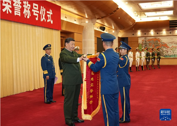 随后,习近平向获得“模范地空导弹营”荣誉称号的空军地空导弹兵某部二营颁授荣誉奖旗。