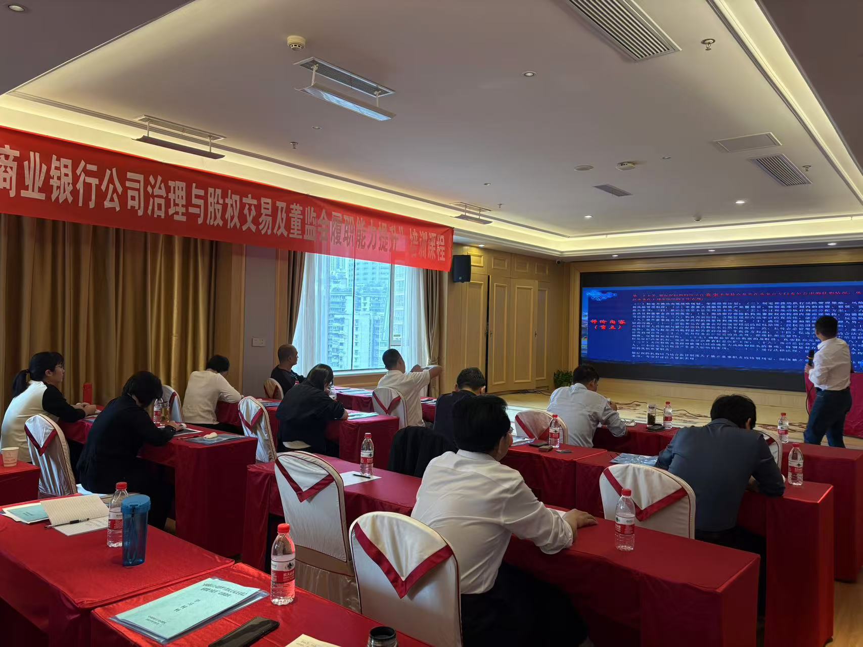 金融文化参讯—安徽(李晓刚)为深入贯彻落实中央金融工作会议精神,进一步提高本行“三会一层”和内设专门委员会的公司治理和风险管理能力,持续提升公司治理水平,更好地推动全行业务高质量发展,10月22日—26日,利辛农商银行组织人员参加公司治理与股权交易及董监会履职能力提升培训班。参训人员包括高管层、审计部全体人员、提名与薪酬管理委员会、战略发展委员会、三农委员会委员等13人。